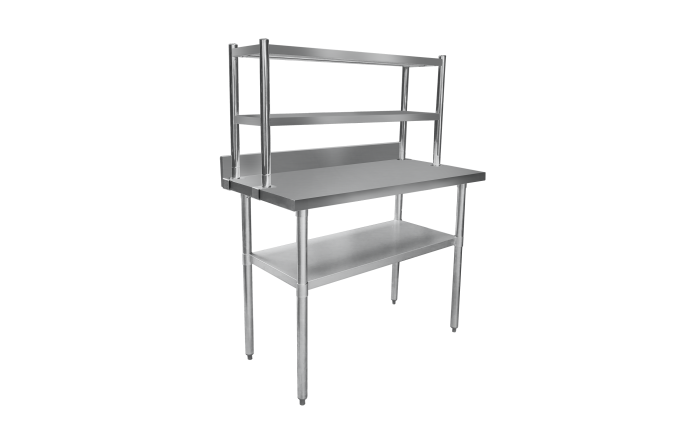 Cater Kitchen offers a wide range of cost-effective and versatile commercial shelving solutions. Pairing our Double over shelves with commercial stainless steel tables creates comprehensive work and storage stations. Additionally, consider our commercial sinks that match perfectly with other kitchen furniture. Visit us to learn more about hygiene and food storage standards.